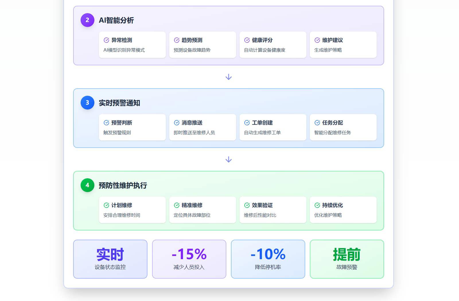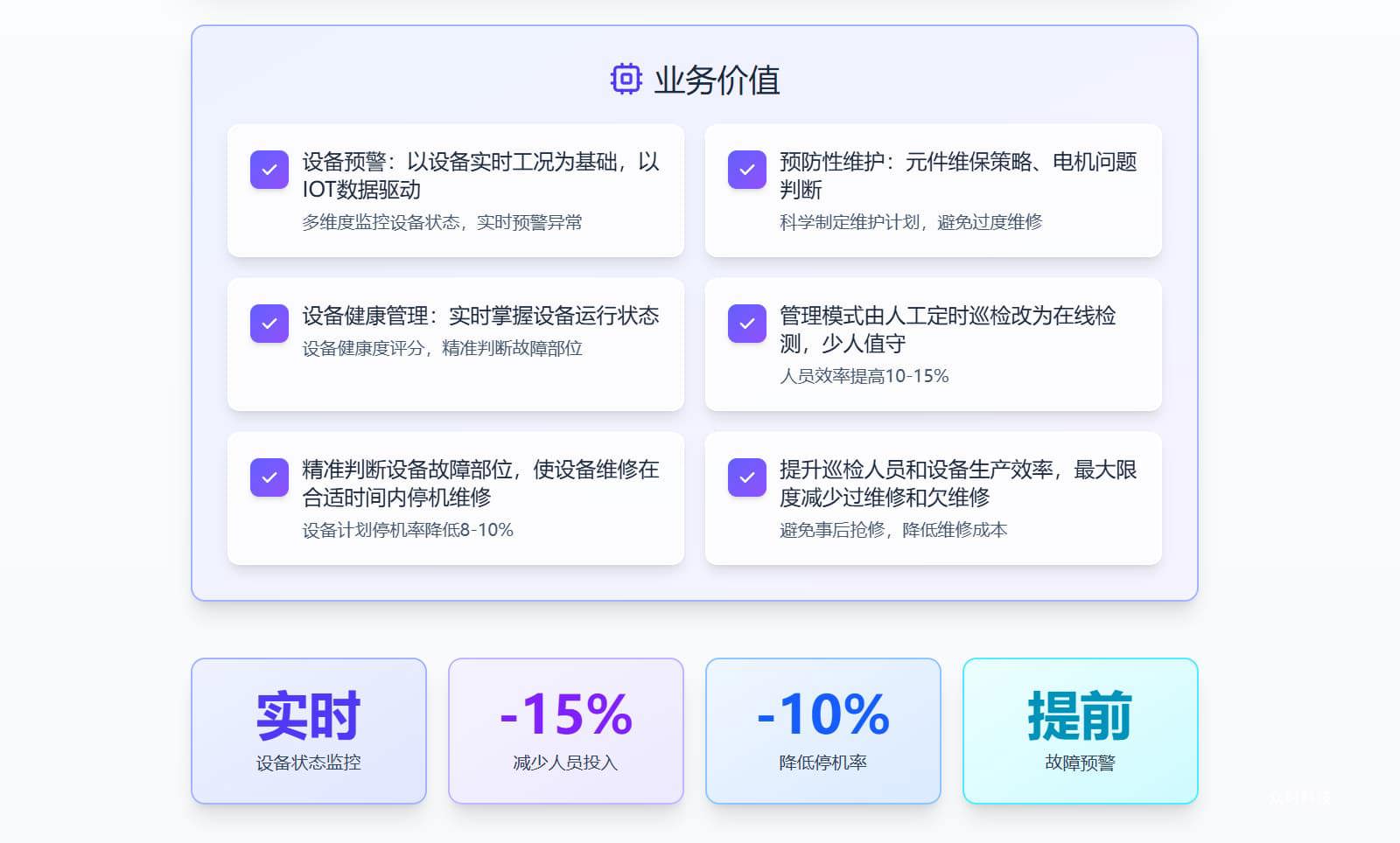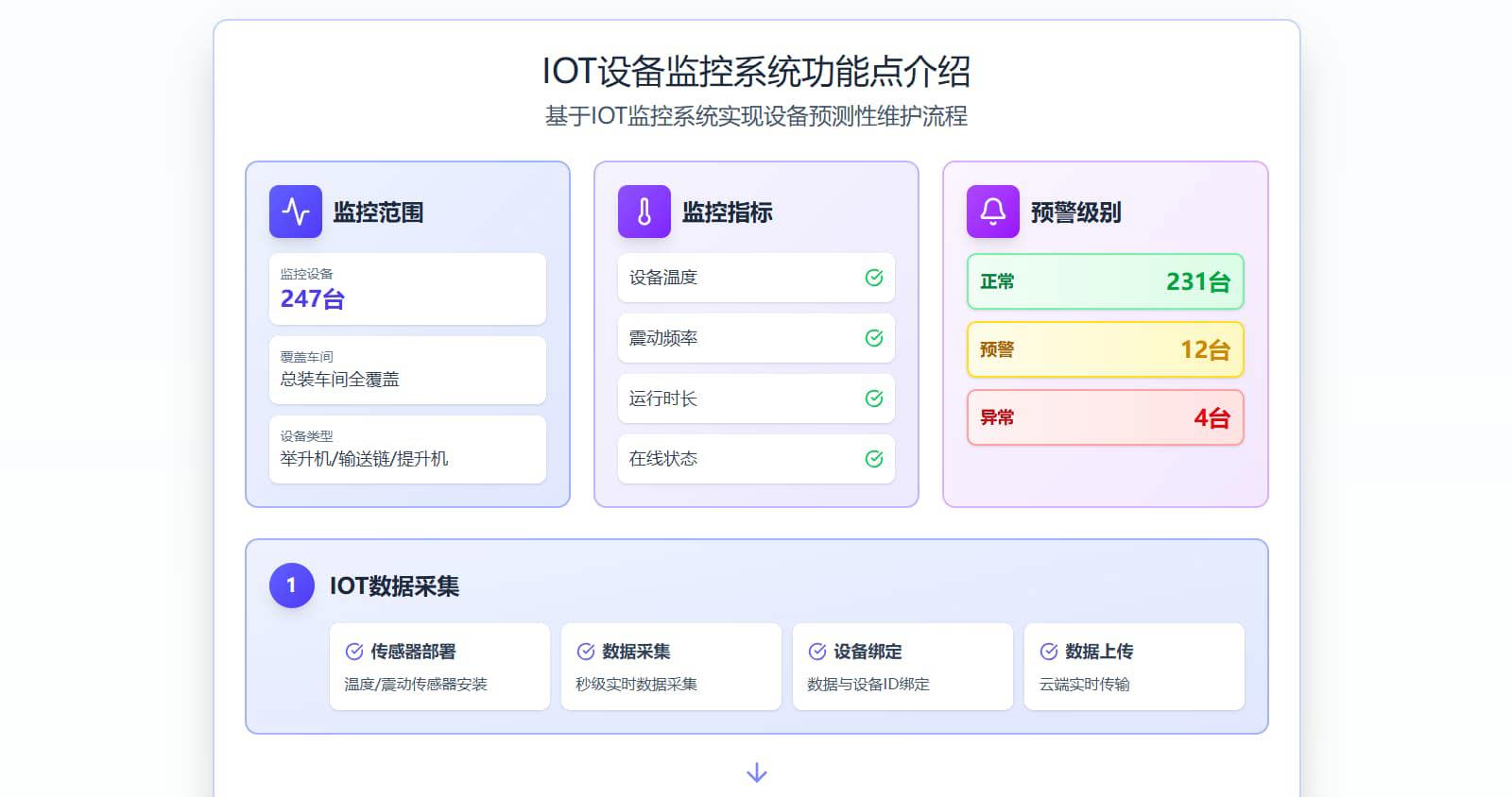 基于IOT技术的设备预测性维护系统,实现设备运行状态实时监控、故障预警、智能运维,降低非计划停机率8-10%