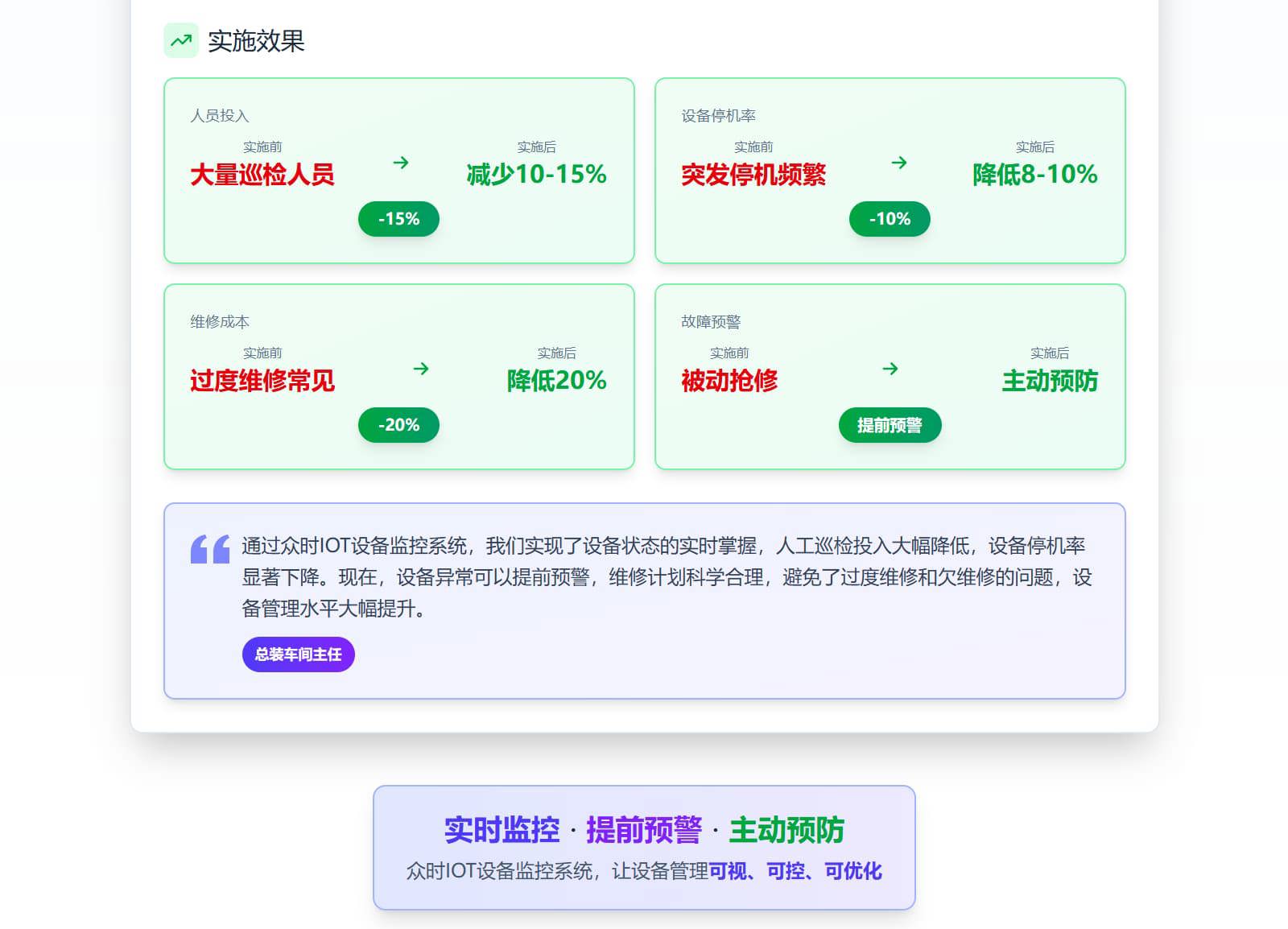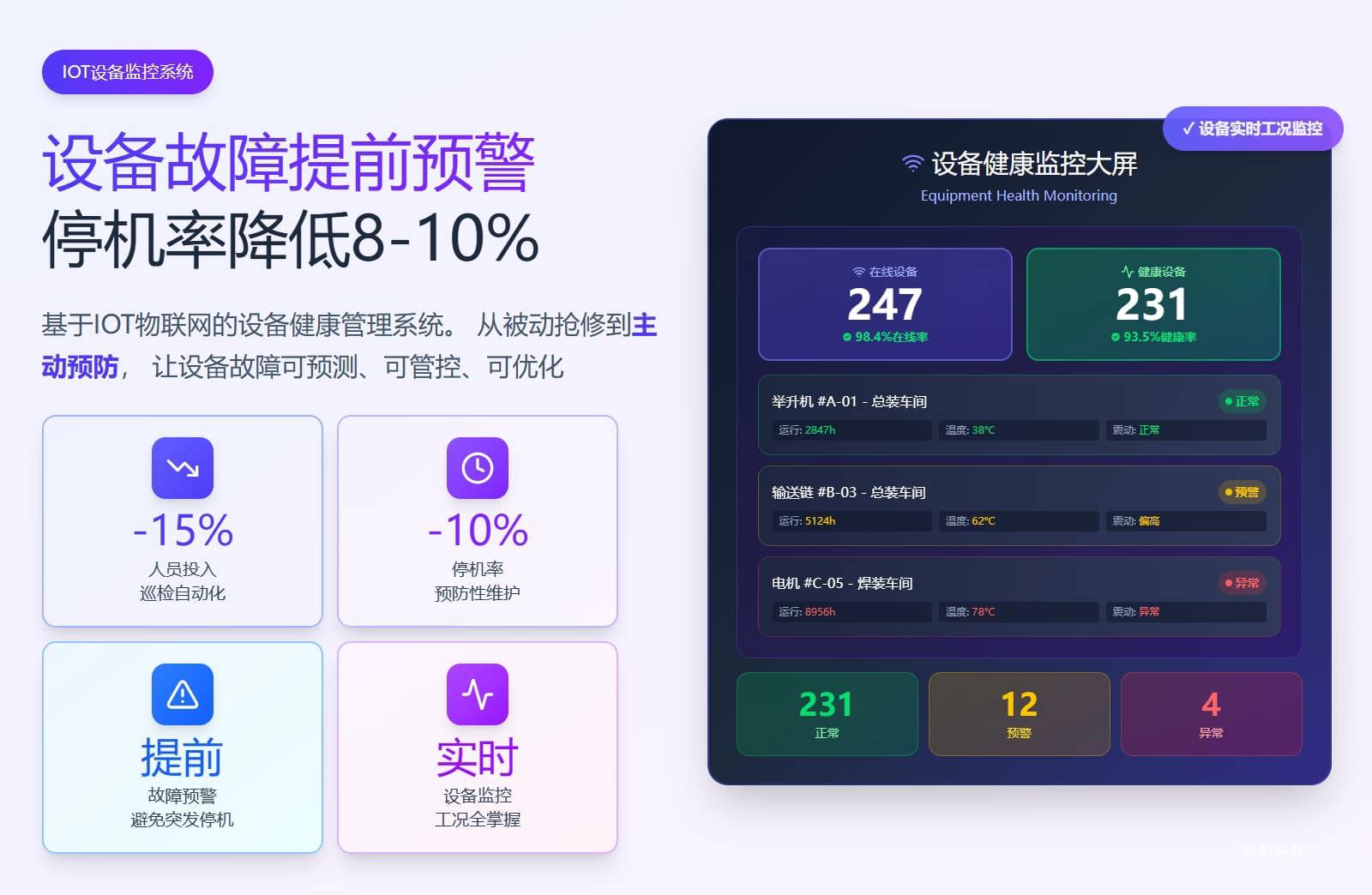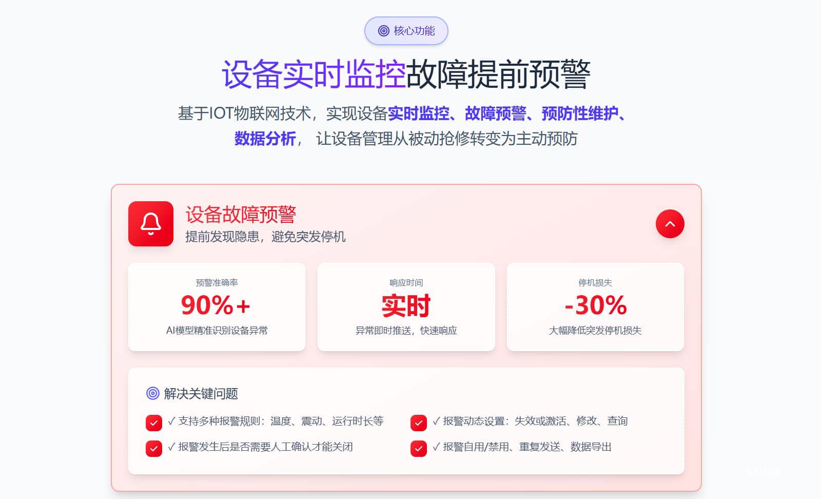 基于IOT技术的设备预测性维护系统,实现设备运行状态实时监控、故障预警、智能运维,降低非计划停机率8-10%